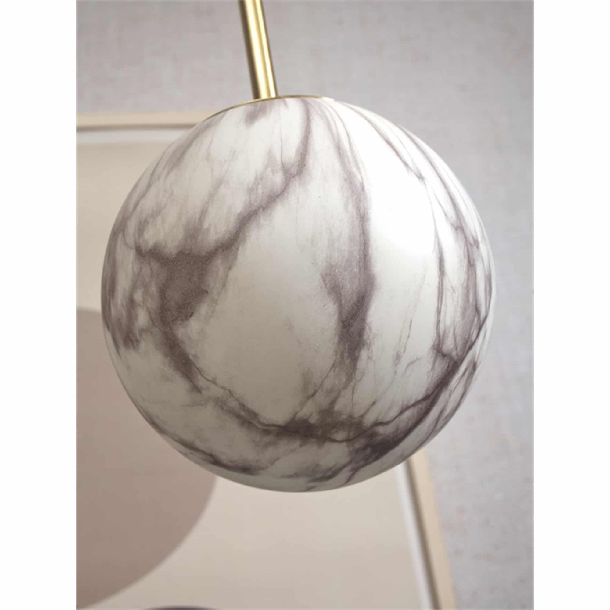 Lampa wisząca Carrara L pochodzi z kolekcji lamp w stylu glamour marki It’s About Romi. Składa się z kulistego klosza z mlecznego szkła o średnicy 28 cm. Lampa idealna do zawieszenia nad stolikiem kawowym w salonie lub nad szafką nocną w sypialni.